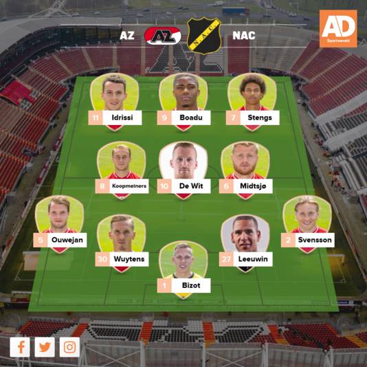 Bizot Ouwejan Wuytens Hatzidiakos Svensson Koopmeiners Til Midtsjo Idrissi Weghorst Jahanbakhsh Opstelling FC. Ajax hoopte in de Eredivisie-topper juist weer over de Marokkaan te kunnen. Op doel staat bijvoorbeeld Maarten Stekelenburg terwijl voorin David Neres weer minuten mag maken.